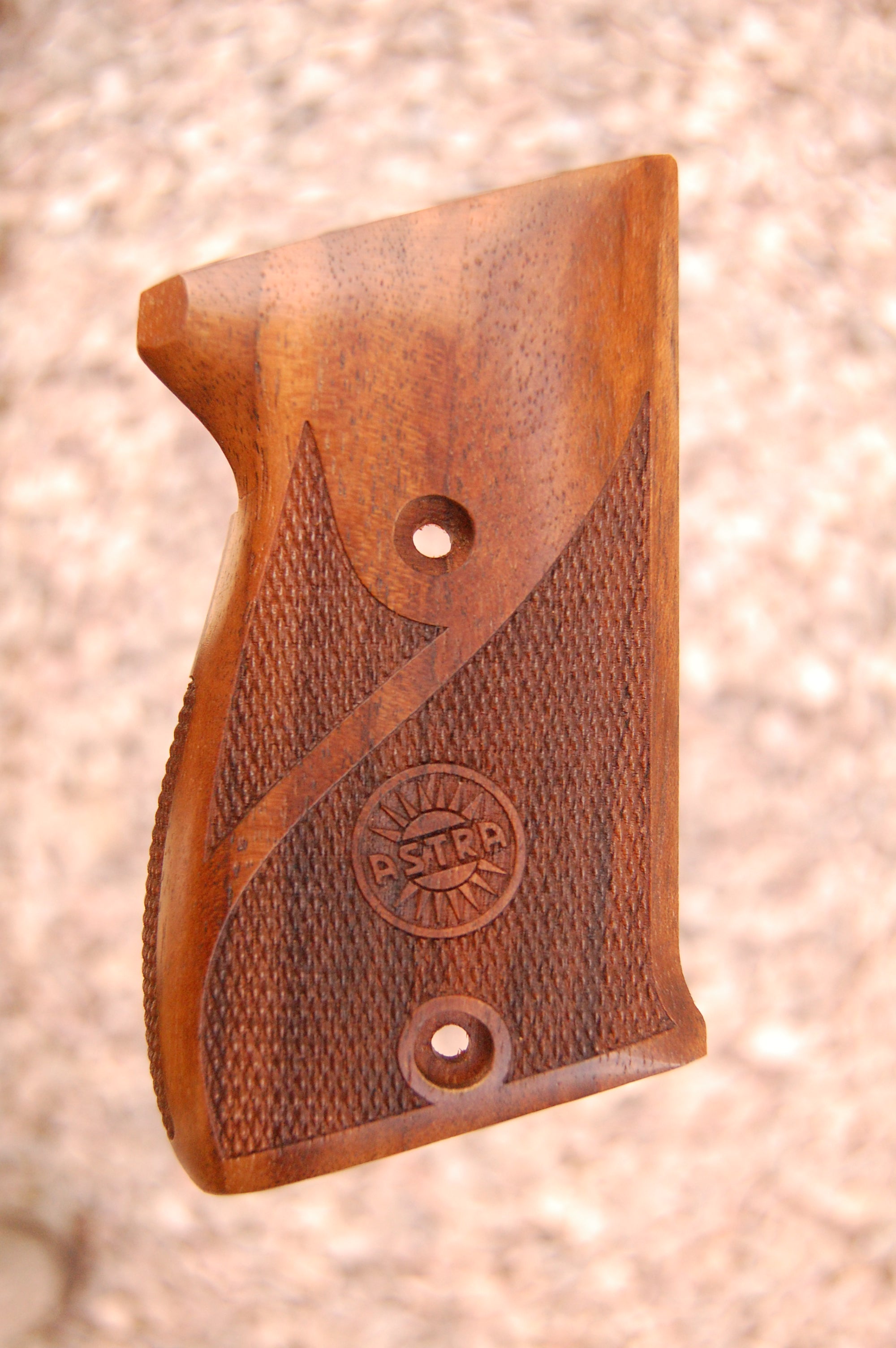 Our grips have an improved shape and fine, sharp checkering for better hold of the gun. With the Astra logo engraved on top of the panels.