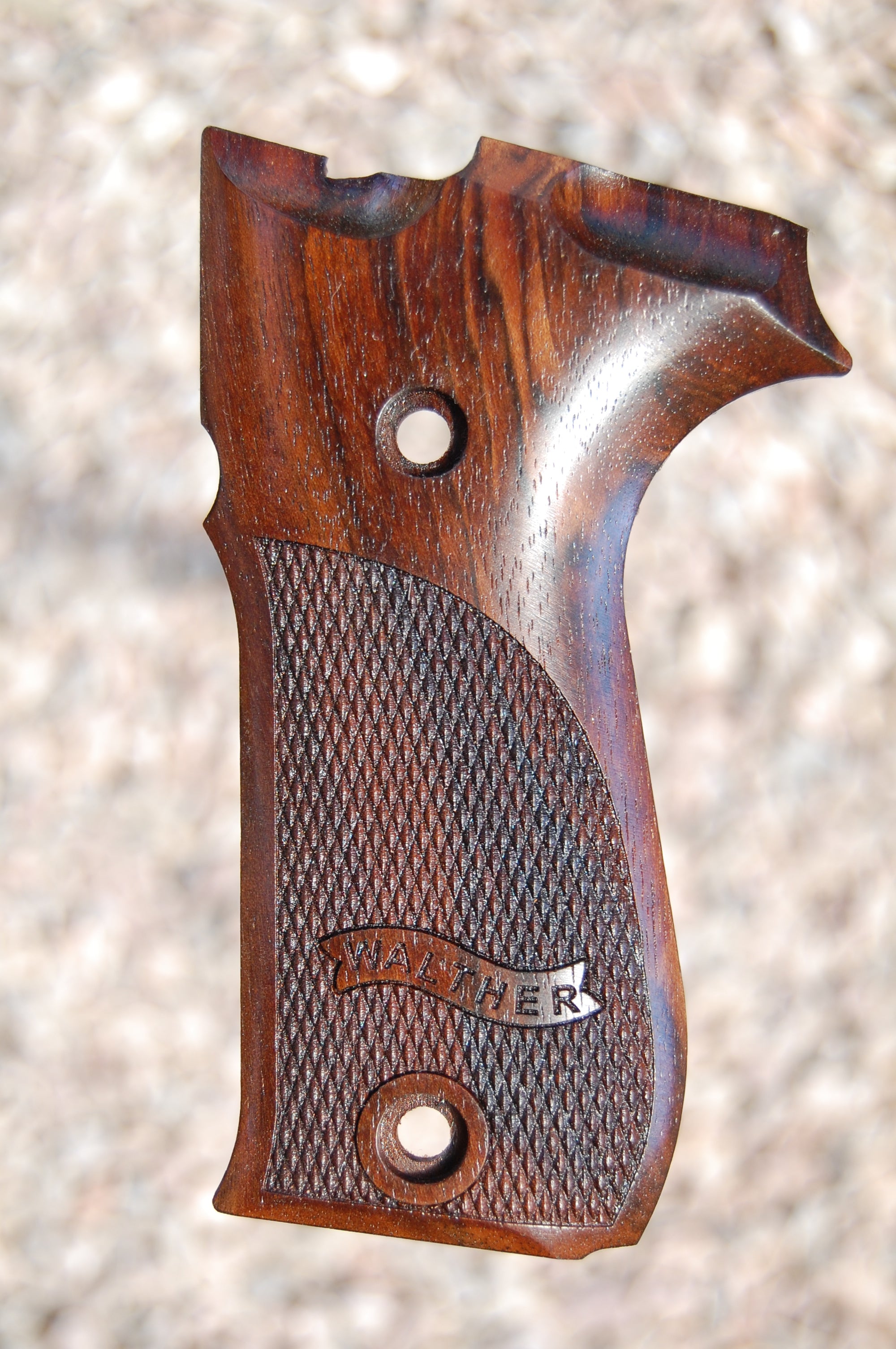 Our grips have an improved shape and fine, sharp checkering for better hold of the gun. With the Walther logo engraved.